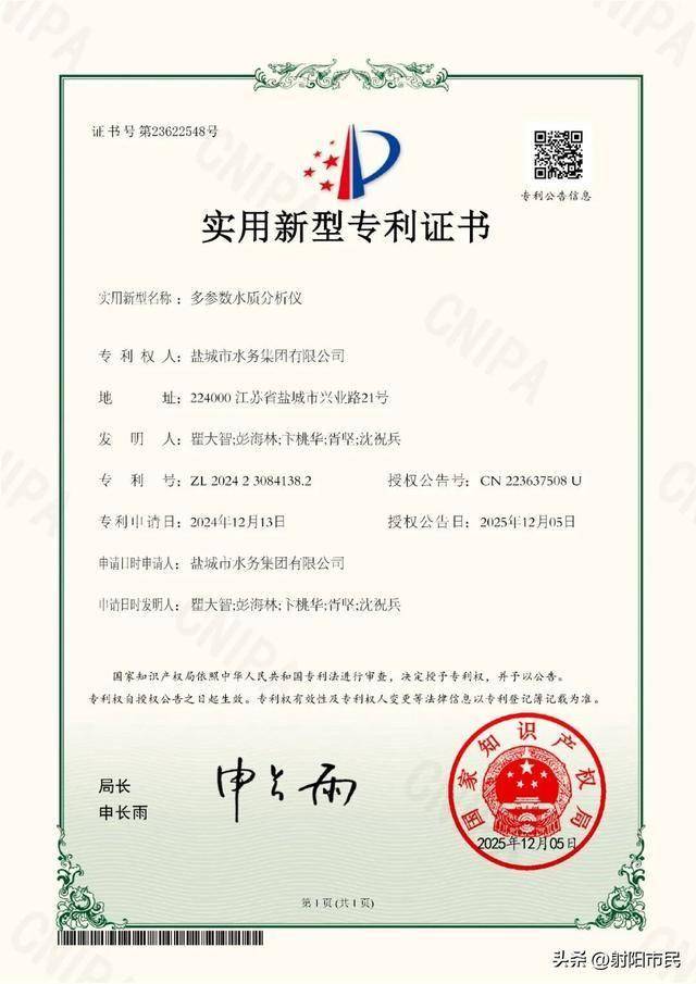 YYVIP易游·(中国有限公司)官方网站近日,市城投水务集团自主研发的“多参数水质分析仪”成功获得国家实用新型专利和计算机软件著作权登记证书。这不仅是集团在智慧水务与技术创新领域取得的重要成果,也标志着集团在保障城市供水安全、提升民生服务水平方面迈出了坚实一步。